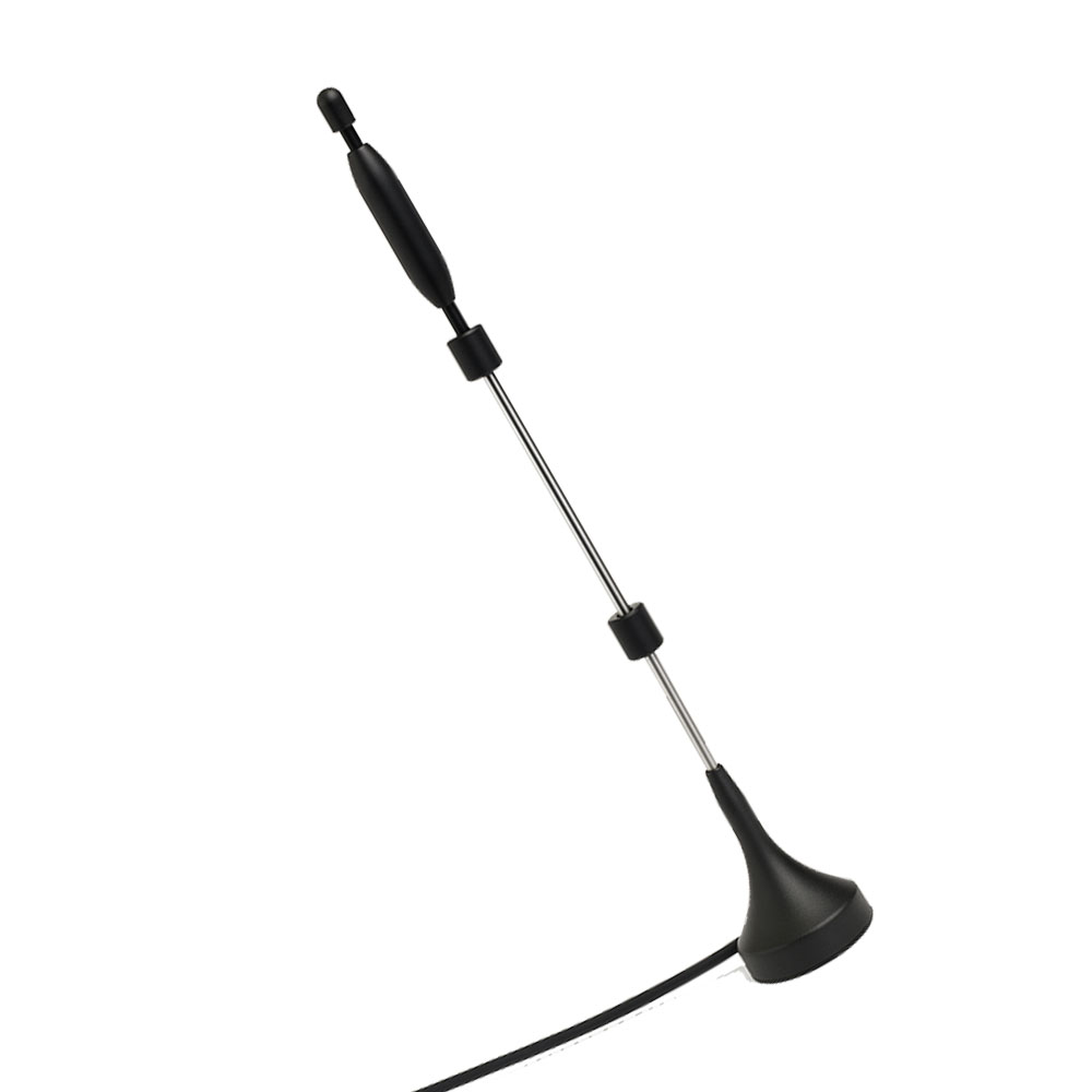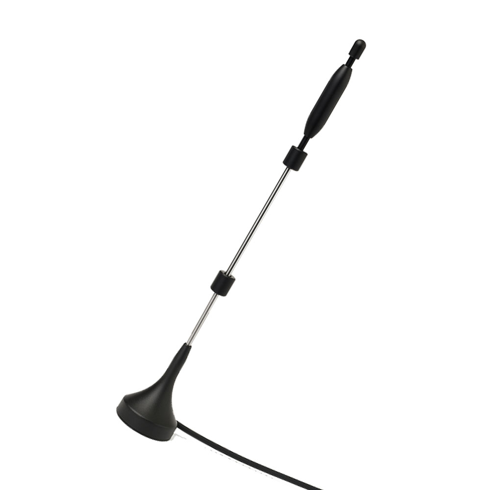 Mount Stuck Antenna CX-AB03 is a ruggedized, compact omnidirectional whip antenna designed for convenient vertical mounting on metallic surfaces (e.g., vehicle rooftops or metallic enclosures). Featuring a low-profile conical magnetic base and a flexible whip for impact resistance, the CX-AB03 provides reliable signal performance in mobile and stationary environments. The integrated cable ensures seamless connectivity for RF systems.