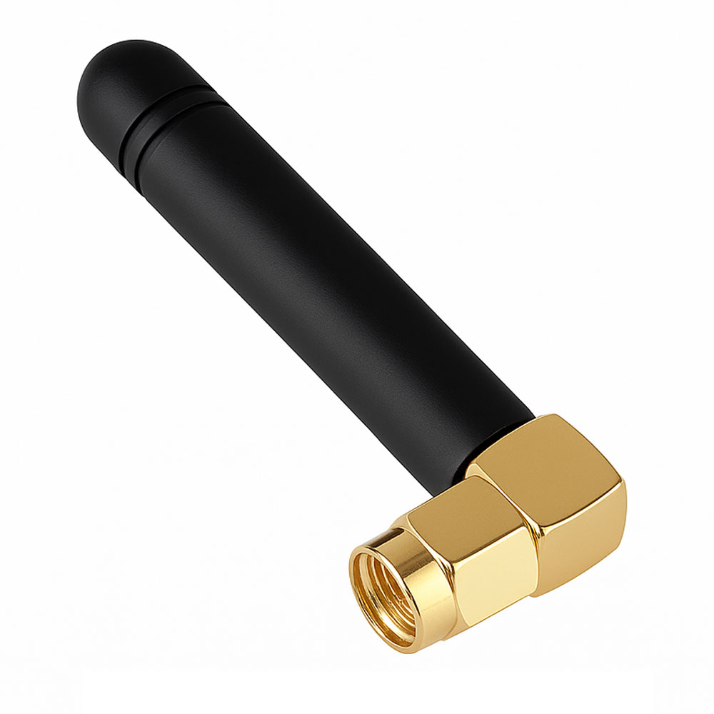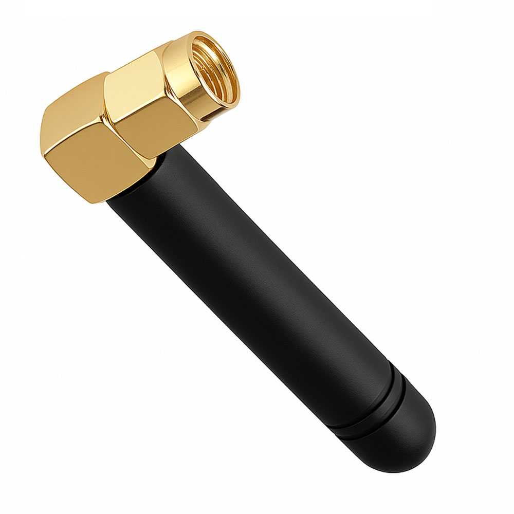 The CX-AP07B Glue Stick Antenna is a compact, right-angle antenna featuring a black cylindrical body and gold-plated SMA male connector. Designed for GSM, LTE, and IoT devices, it delivers strong omni-directional signal performance in space-constrained environments.